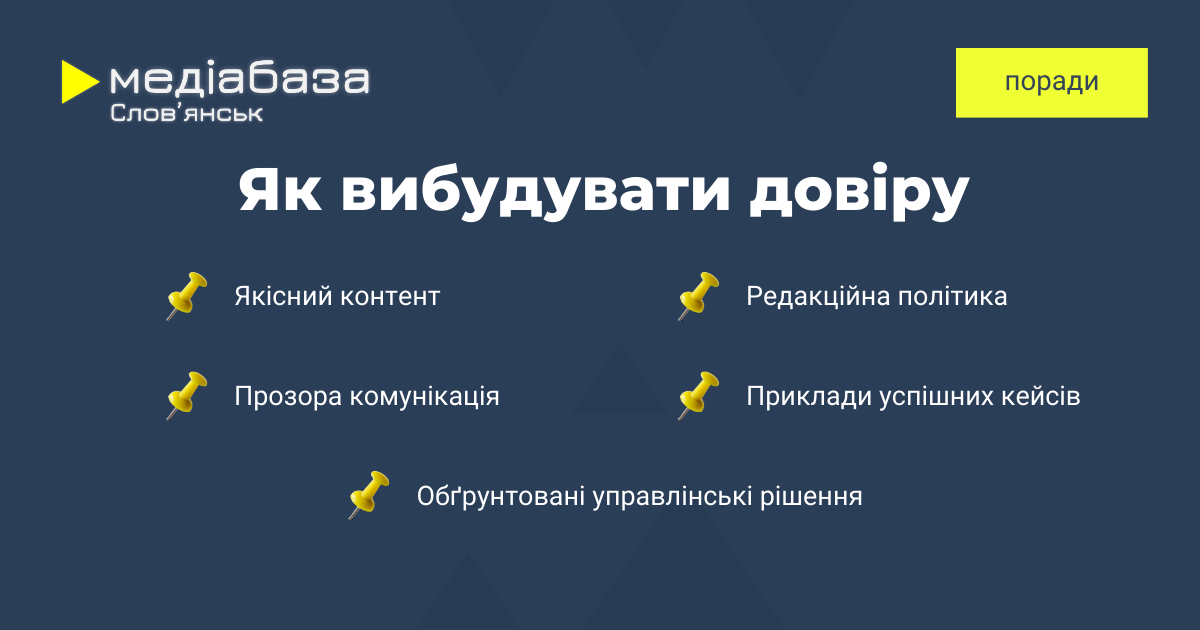 “Купують у нас тільки тоді, коли довіряють”, – підкреслила тренерка. Довіру формують якісний контент, прозора комунікація, зрозуміла редакційна політика та приклади успішних кейсів. Варто показувати команду, ділитися контактами й фотографіями журналістів, пояснювати принципи роботи. Це допомагає аудиторії та бізнесу бачити в медіа професійного й відкритого партнера.