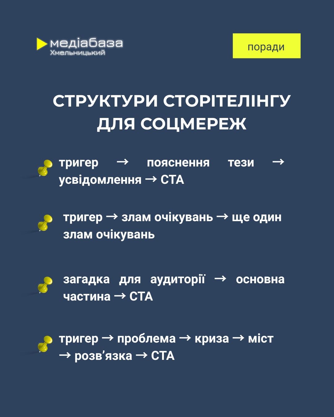 Структури сторітелінгу для соціальних мереж. Ілюстрація Медіабази Хмельницький
