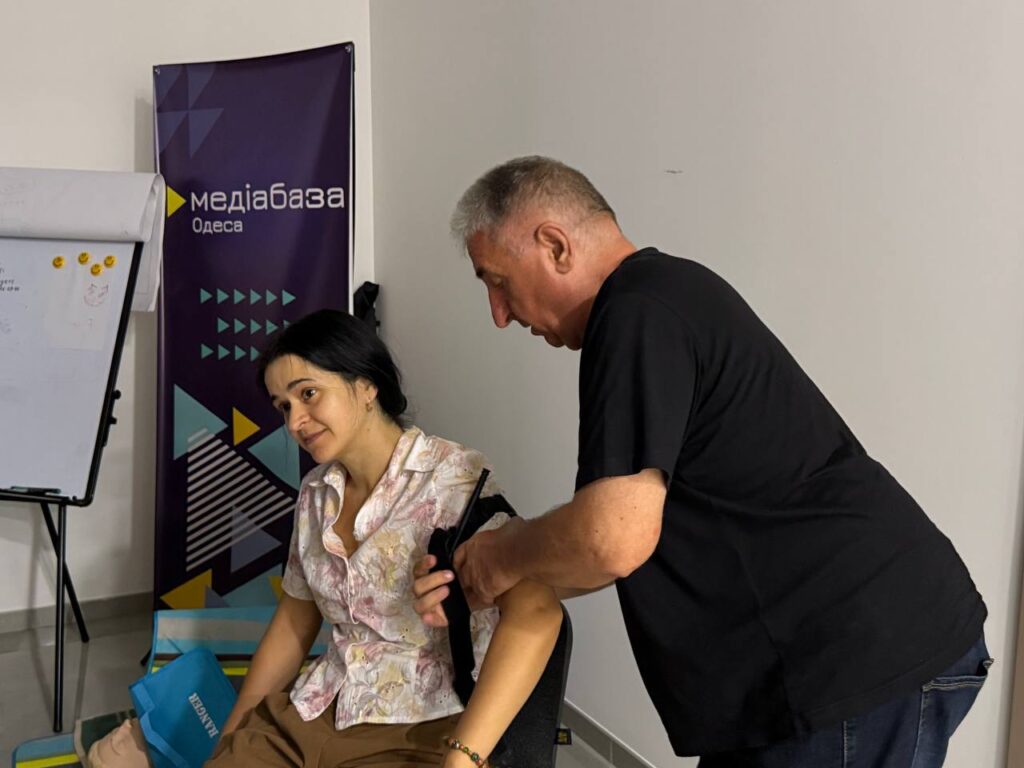 Як надавати домедичну допомогу в зоні бойових дій, під час обстрілів або якщо швидка не може приїхати вчасно – про це дізнались одеські та херсонські медійники на тренінгу, організованому регіональним хабом Інституту масової інформації (ІМІ) “Медіабаза Одеса, Херсон”. Спікером заходу став інструктор ГО “Учбовий центр “Фенікс”, журналіст і ветеран Олександр Карпенко.
