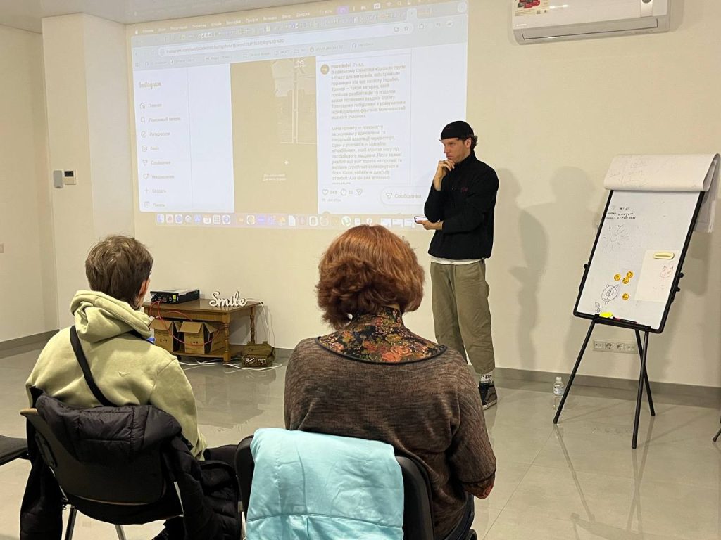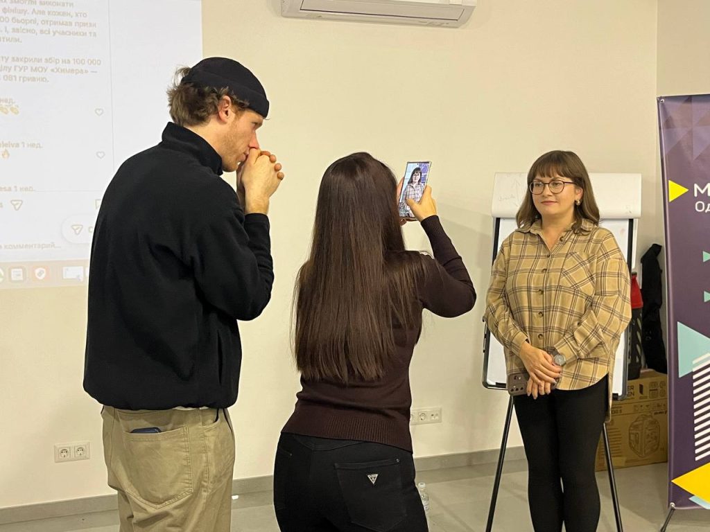 Після завершення теоретичної частини учасники перейшли до практики. Спочатку учасники мали змоделювати ситуацію та прописати власну розкадровку майбутнього репортажу. Другим етапом стала робота “в полі” – учасники знімали та монтували короткі сюжети безпосередньо з тренінгу, застосовуючи все, що щойно опанували. Після завершення роботи учасники отримали фідбек від Олександра, як зробити свої мобільні репортажі ще виразнішими й ефективнішими.