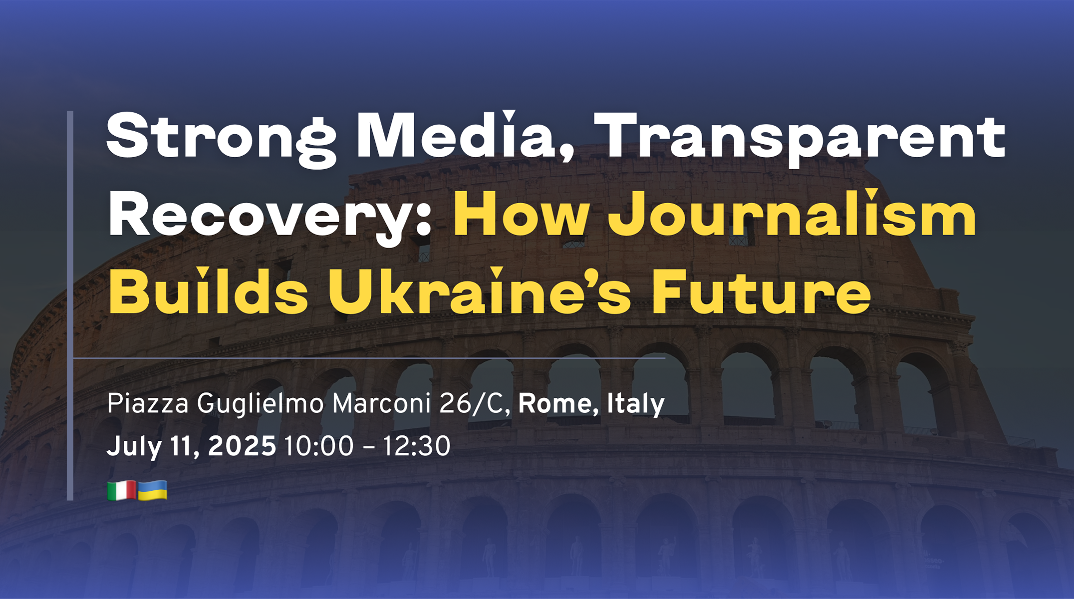 У п’ятницю, 11 липня, в Римі (Італія) в межах Ukraine Recovery Conference – 2025 відбудеться сайдівент “Сильні медіа, прозоре відновлення: Як журналістика будує майбутнє України” про роль незалежних українських медіа у відновленні, демократичних перетвореннях та розбудові суспільної довіри.
