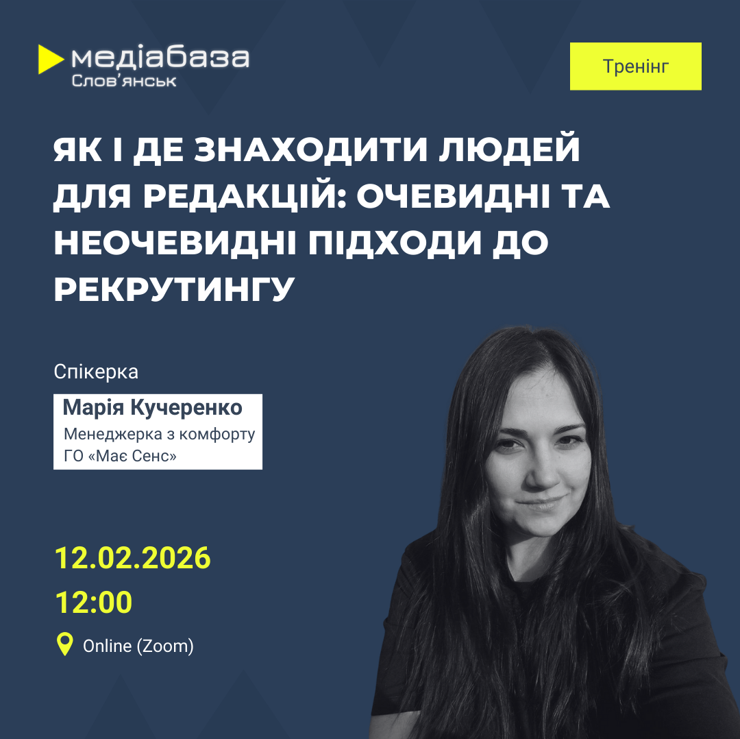 Регіональний хаб Інституту масової інформації “Медіабаза Слов’янськ” запрошує 12 лютого, о 12:00, журналістів, редакторів і медіаменеджерів на онлайн-тренінг “Як і де знаходити людей для редакцій: очевидні та неочевидні підходи до рекрутингу, співбесід і онбордингу”.