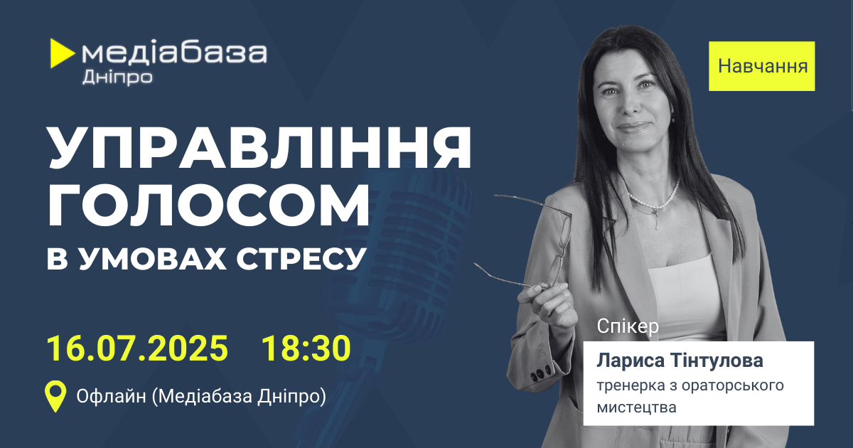 16 липня, о 18:30, регіональний хаб Інституту масової інформації “Медіабаза Дніпро” проведе тренінг “Управління голосом в умовах стресу”. Захід буде корисний насамперед медійникам і допоможе “опанувати голос” під час прямих увімкнень, записів стендапів та під час спілкування зі спікерами.