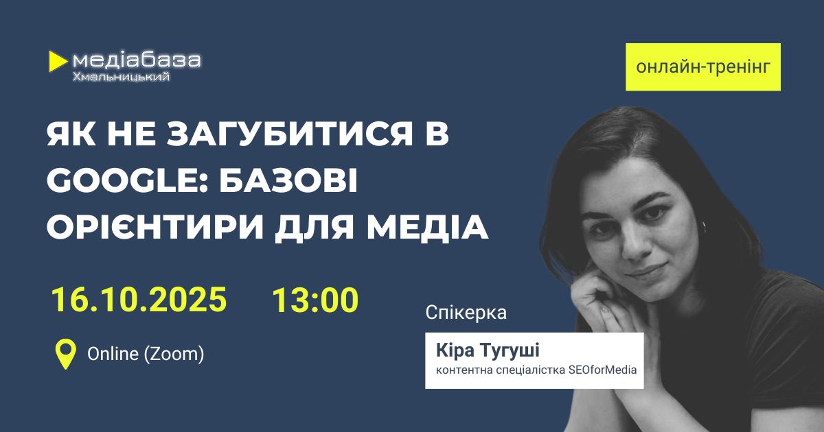16 жовтня, о 13:00, регіональний хаб Інституту масової інформації “Медіабаза Хмельницький” проведе онлайн-тренінг “Як не загубитися в Google: базові орієнтири для медіа”.