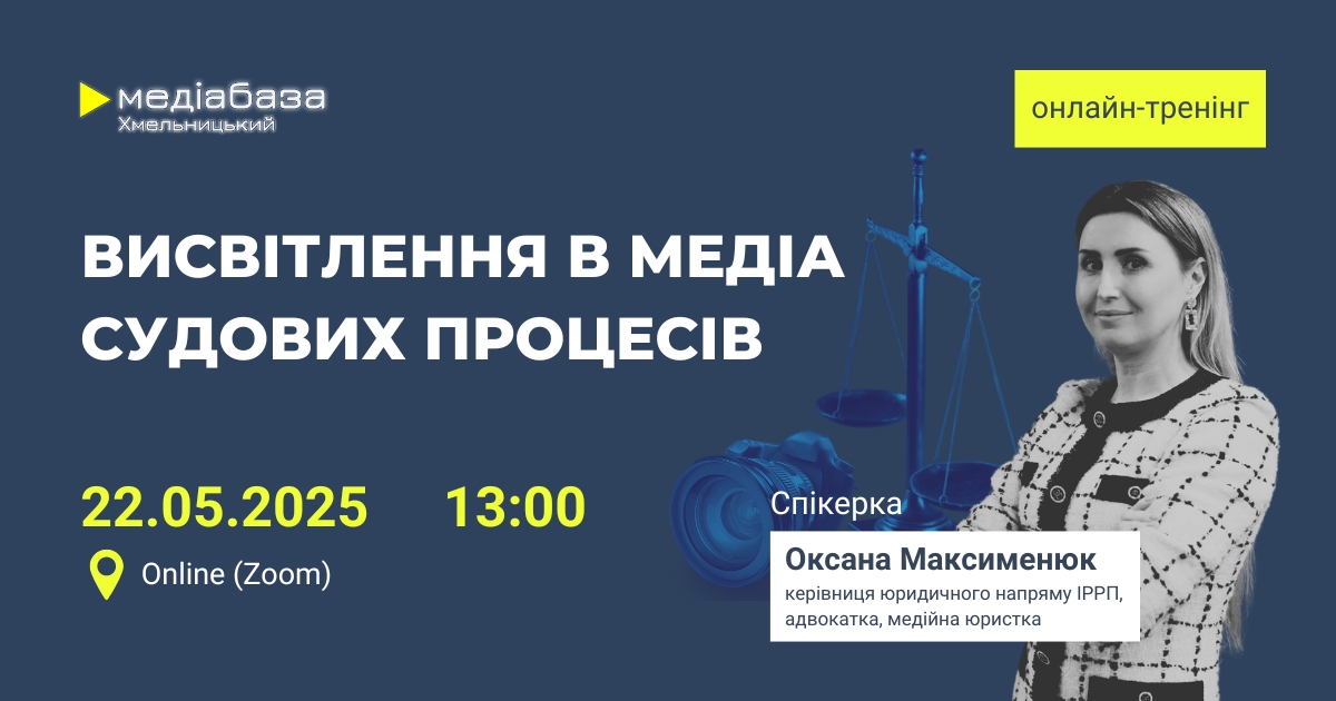 22 травня, о 13:00, журналістський регіональний хаб Інституту масової інформації (ІМІ) “Медіабаза Хмельницький” проведе онлайн-тренінг “Висвітлення в медіа судових процесів”.