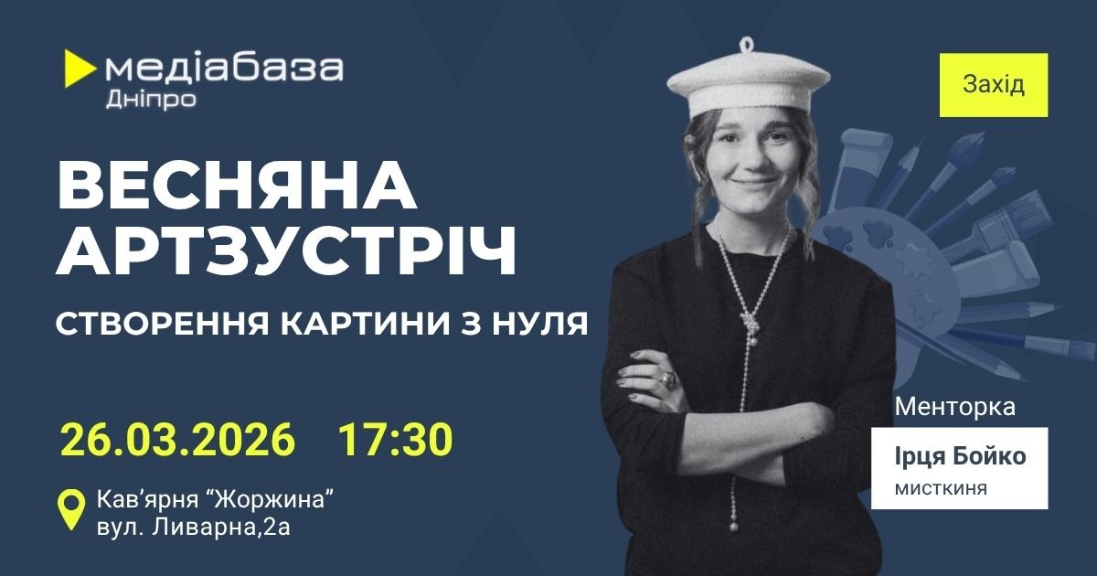 Регіональний хаб Інституту масової інформації “Медіабаза Дніпро” 26 березня проведе артзустріч для психологічного розвантаження медійників. Учасники створюватимуть власну картину з нуля, навіть не маючи навичок малювання.