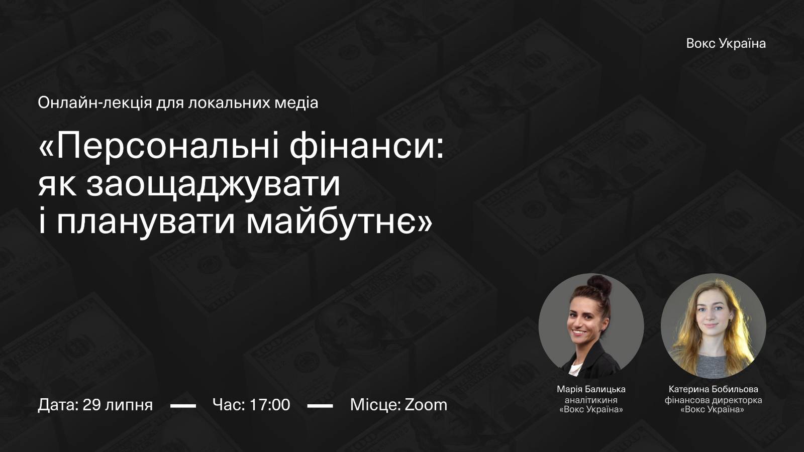 29 липня – онлайн-лекція для локальних медіа “Персональні фінанси: як заощаджувати і планувати майбутнє”