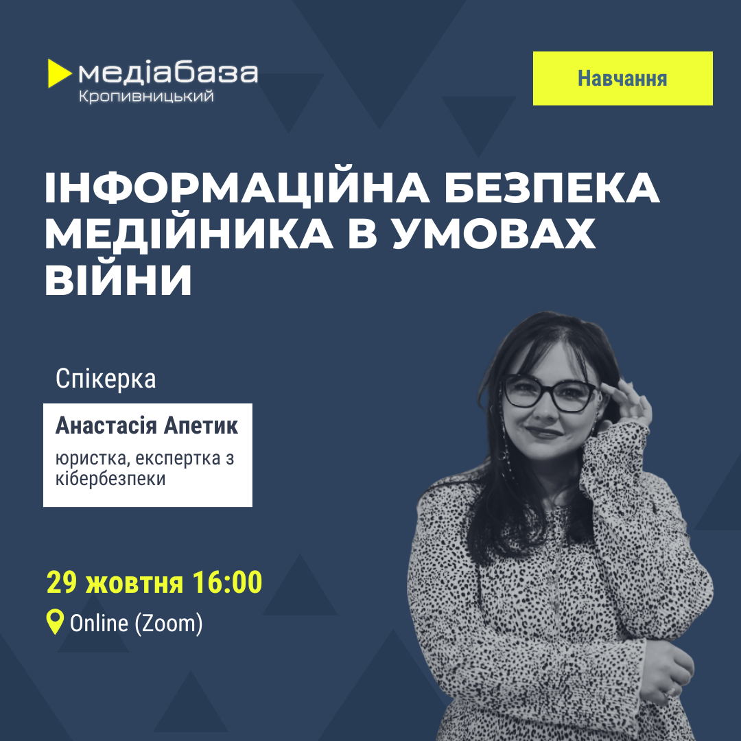 29 жовтня – вебінар “Інформаційна безпека медійника в умовах війни” від Медіабази Кропивницький
