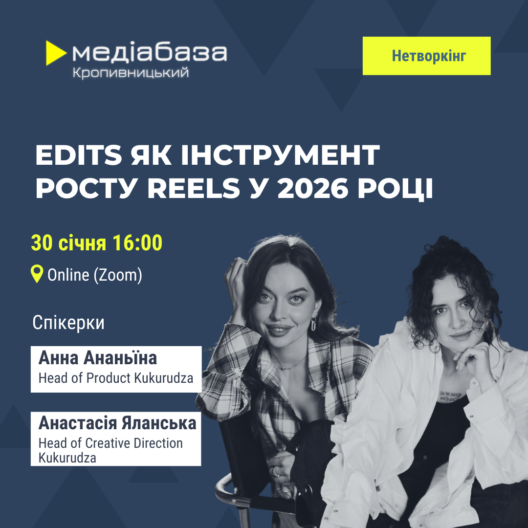 30 січня – вебінар “Edits як інструмент росту Reels у 2026 році” від Медіабази Кропивницький