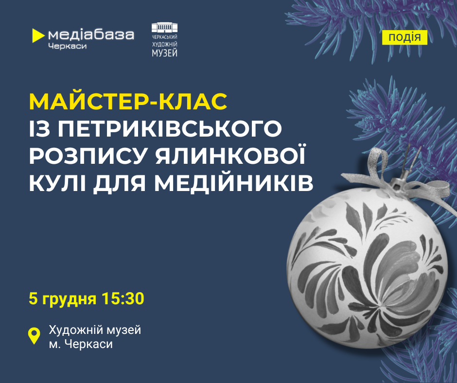 Регіональний хаб Інституту масової інформації (ІМІ) “Медіабаза Черкаси” організовує 5 грудня майстер-клас із петриківського розпису ялинкової кулі.