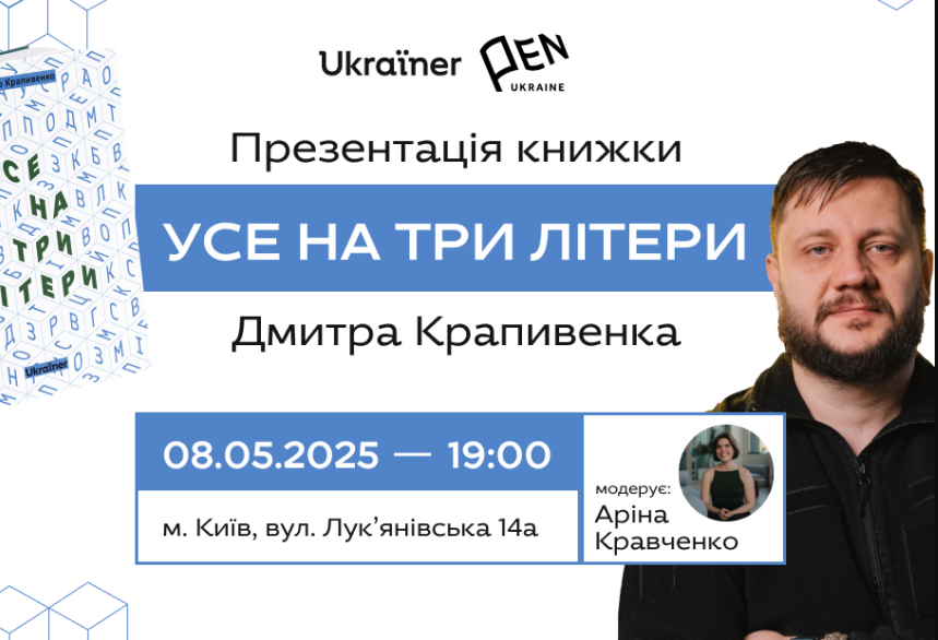 8 травня в Києві відбудеться презентація дебютної книжки – збірки нарисів журналіста й військовослужбовця Дмитра Крапивенка видавництва Ukraїner “Усе на три літери”.
