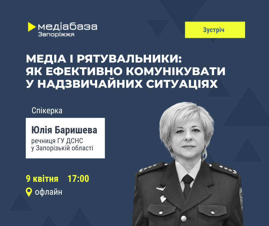 9 квітня о 17:00 регіональний хаб Інституту масової інформації “Медіабаза Запоріжжя” проведе зустріч “Медіа і рятувальники: як ефективно комунікувати у надзвичайних ситуаціях”.