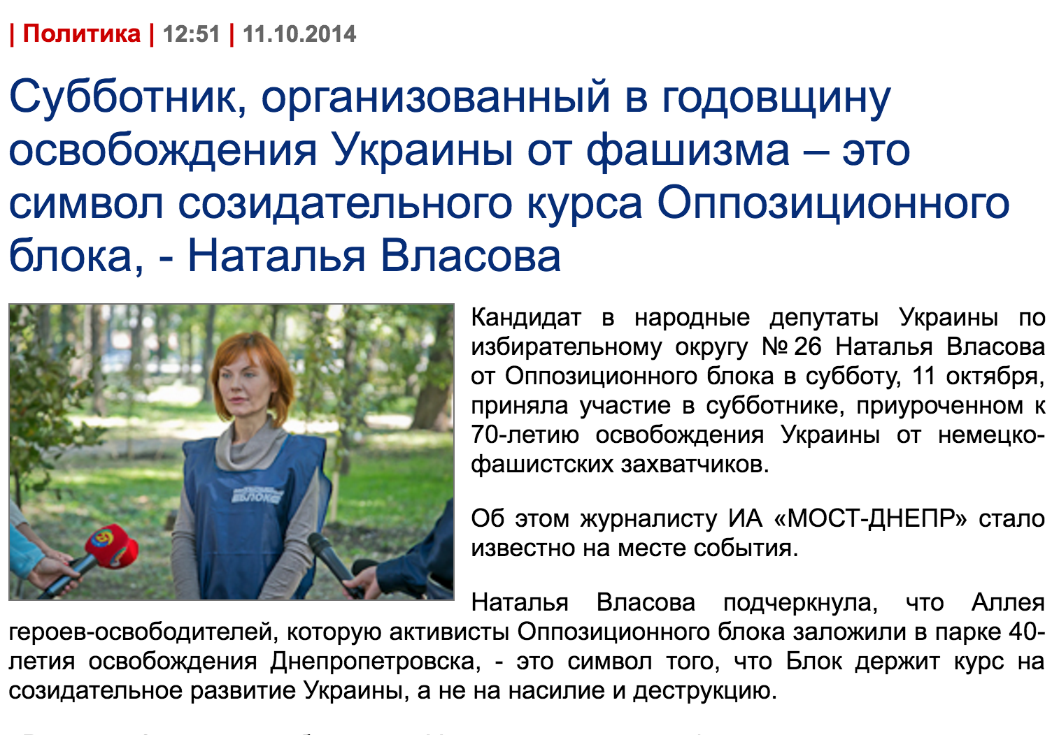 Дуже важко назвати цю відповідь щирою. Адже під час виборчої кампанії 2014 матеріали з ознаками політреклами і агітації в інтересах Власової, здебільшого немарковані, неодноразово з’являлися у дніпровських ЗМІ. За жовтень 2014 року під час моніторингу “джинси” зафіксовано 15 немаркованих рекламних публікацій в інтересах Власової у чотирьох ЗМІ Дніпра (2 сайти і 2 газети).