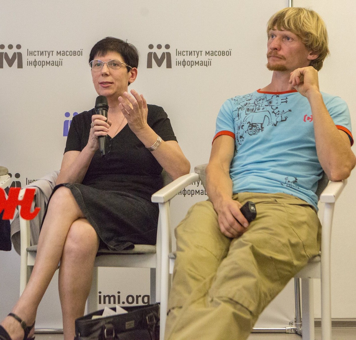 Модераторка вступної панелі Наталія Соколенко принагідно зазначила, що їй і самій важко визначитися, хто в медіаспільноті є на сьогодні для неї авторитетом, нагадавши про спроби переворотів в обох українських журналістських профспілках.