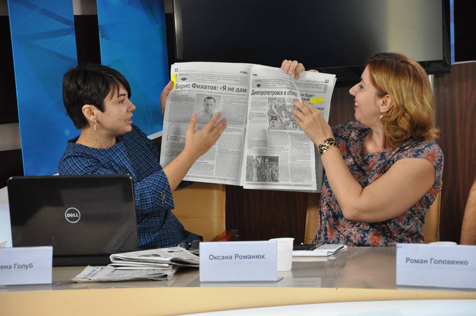 Короткий контент-аналіз місцевих ЗМІ провела експертка з моніторингу ІМІ Олена Голуб. Вона відмітила дуже велику кількість джинси в місцевій пресі напередодні виборів. “Наприклад, в газеті ”Днепр вечерний” більше 50% джинси, тобто власне журналістських сатеріалів майже немає. А ті, що є, займають невеликі площі, на джинсу припадає близько 70% площі газети, ще 10% звичайної реклами, — відзначила експертка. — А інтернет-видання gorod.dp.ua, яке входить до холдингу “Сегодня” Рината Ахметова, розміщує багато анти-піару проти групи Коломойського, Корбана та Філатова, що цілком логічно, зважаючи на політичну позицію власника”.