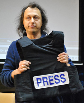 Продюсер TV Reuters Сергій Каразій приблизно місяць щороку проводить у гарячих точках. Він висвітлював війну у Боснії, Косово, Чечні, Афганістані, Іраку, Карабаху, Південній Осетії тощо. Каже, що головне в екстремальній журналістиці – показати події такими, які вони є. І при цьому вижити, адже «загинути за матеріал, який, можливо, навіть не вийде в ефір – найбільший ідіотизм, який може статися з вами в житті». На майстер-класі для студентів і гостей Школи журналістики Українського католицького університету у Львові Сергій продемонстрував вміст своєї похідної сумки – захисні жилети, протигази, шолом, аптечку. Крім цих речей, необхідно знати основні правила поведінки в місцях, де журналіст ризикує здоров’ям і життям.