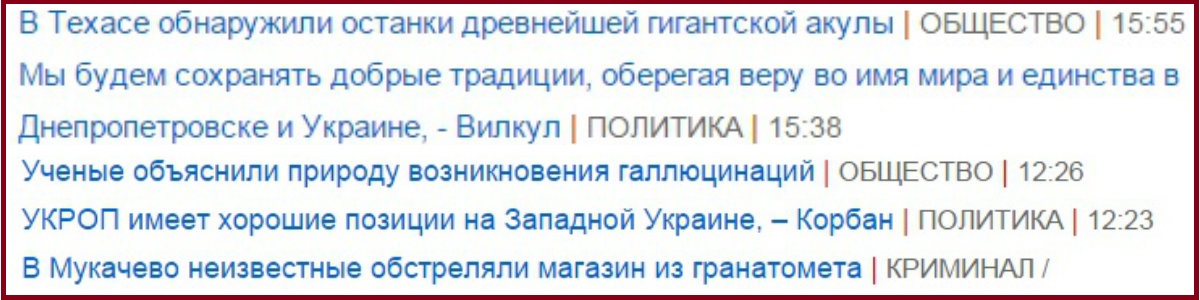 Політично ангажованих новин багато не буває. Ставте їх побільше. А якщо раптом вам здається, що це вже перебор — візьміть у своїх інформпартнерів найабсурднішу новину. Хай вона відволікає читача між новинами “Кадидат А пообіцяв” і “Кандидат Б обіцяє” – щоби вони не здавалися йому однаковими. Так практикує інформагентство “Мост Дніпро”. В його стрічці міститься 67% усієї виявленої у 4 дніпропетровських ЗМІ джинси.