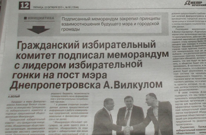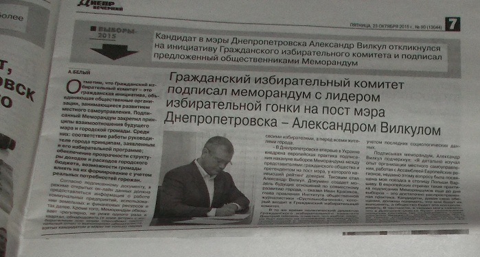 Навіть якщо новини однакові — нічого страшного, читач не помітить. А раптом вирішить перевірити і горнути сторінки назад, щоби перевірити, чи не привиділися йому два однакових заголовки — то краще запам’ятає чому треба голосувати саме за цього кандидата. Так, у “Дніпрі вечірньому” в одному номері вийшли статті про підтримку “Громадським комітетом виборців” Олександра Вілкула: