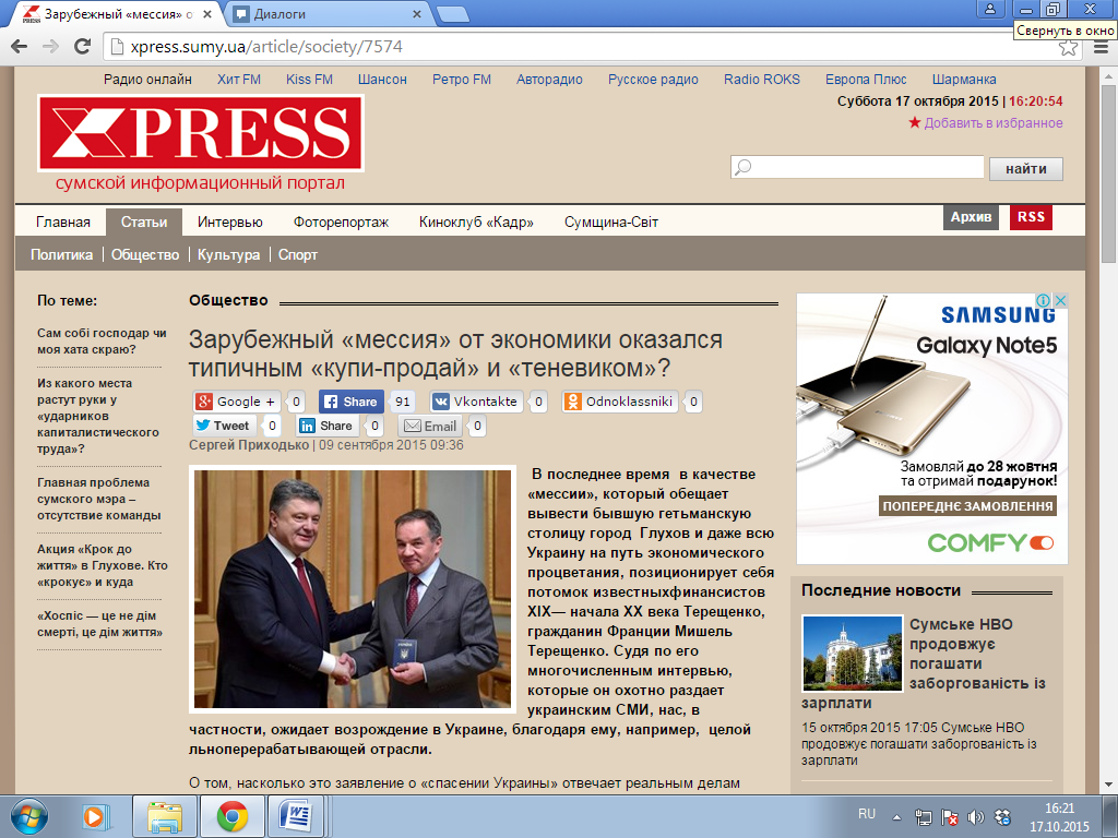 Слід зазначити, що перша згадка про Мішеля Терещенка на порталі датується 2011 роком. Матеріал «Мишель Терещенко: «Я работаю на земле моих прапрадедов, а это нечто больше, чем обычный бизнес» мав зовсім іншу основу й загальне забарвлення.