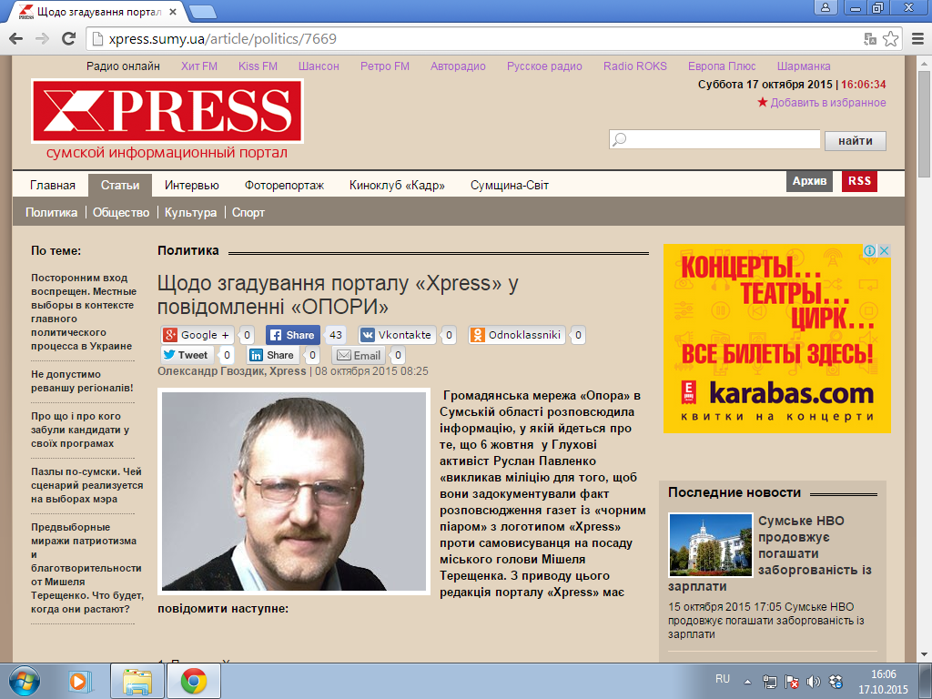 У повідомленні «ОПОРИ» зазначалося, що представники громадянської мережі попросили прокоментувати ситуацію, що склалася, головного редактора сумського інформаційного порталу «XPRESS» Олександра Гвоздика. Він «заявив, що до однойменного друкованого видання не має жодного відношення і обурений, що його бренд використовують в політичній боротьбі. Разом з тим редактор не пояснив появу матеріалів проти кандидата на сторінках свого інтернет-порталу».