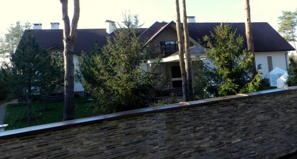 В найдальшій від траси території маєтку можна побачити повністю готовий житловий комплекс. Будинок, гараж, будинок для охорони. Хатка не вражає розмірами, певно це тимчасове житло "донецького" міністра поки триває будівництво основного палацу.