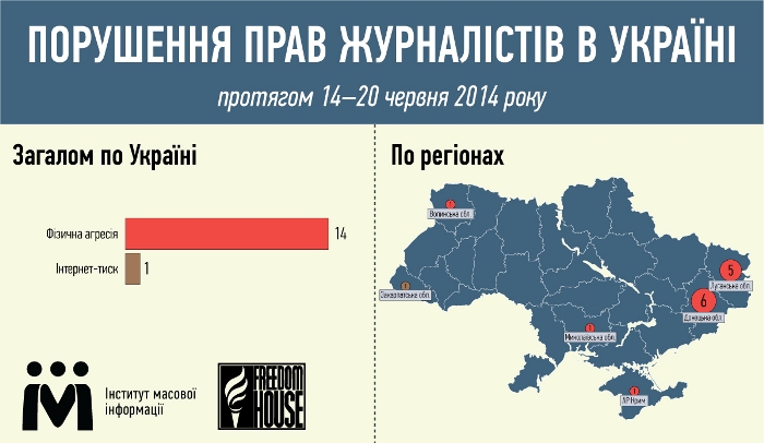 У період із 14 по 20 червня в Україні зафіксовано 14 порушень у категорії «Фізична агресія».