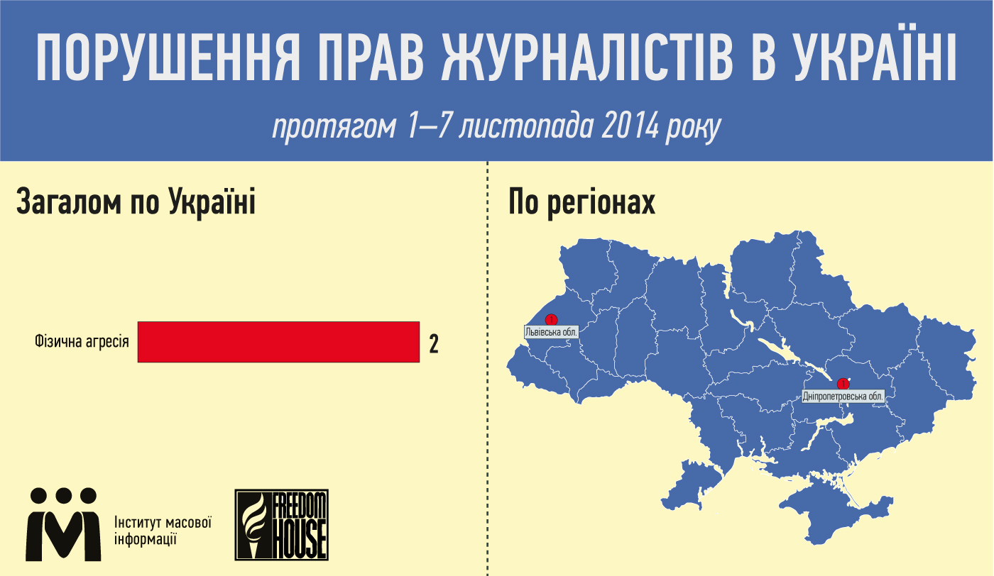 У період із 1 по 7 листопада зафіксовано лише два випадки порушень свободи слова, проте, обидва в категорії «Фізична агресія».