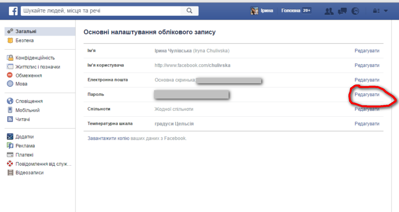 Для цього зайдіть в налаштування облікового запису, “Загальні” і навпроти “Пароль” натисніть “редагувати”.