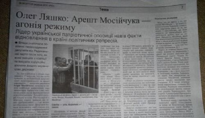 У №39 від 26 вересня розміщення стаття «Олег Ляшко: Арешт Мосійчука – агонія режиму», в якій подана інформація про факт арешту народного депутата суто із позиції «Радикальної партії Олега Ляшка». Коментарів представників інших політичних сил немає.