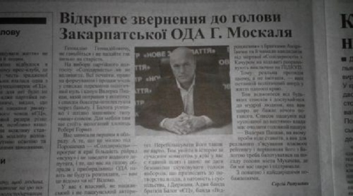 У випуску №39 тижневика опубліковано звернення Сергія Ратушняка до голови Закарпатської ОДА; на цій же сторінці подані коментарі щодо певних подій – суто із Фейсбук-сторінки Ратушняка.