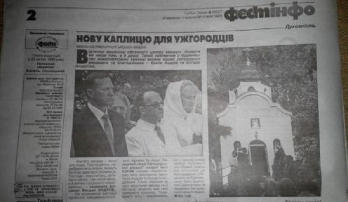 №30 від 25 вересня містить повідомлення про те, що Богдан Андріїв як меценат разом з братом за власний кошт звели капличку на території Ужгородської міської лікарні.