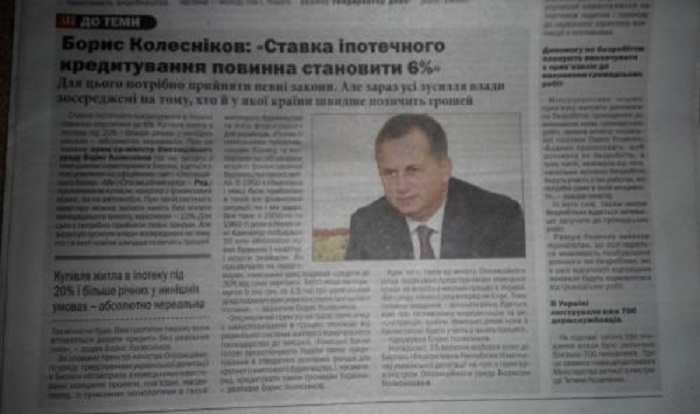 У тижневику «Закарпатська правда» (№35 від 19 вересня) поруч із статтею про проблему придбання власного житла розміщено розлогий коментар на цю тематику від представника партії «Опозиційний блок» Бориса Колеснікова. Коментарів представників інших політичних сил не подано.