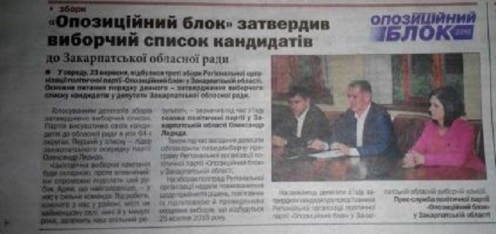 Номер від 26 вересня "радує" повідомленням від прес-служби «Опозиційного блоку» про конференцію (збори) обласного осередку партії щодо висунення кандидатів до Закарпатської облради. При цьому повідомлень про конференції (збори) інших політичних сил не зафіксовано.