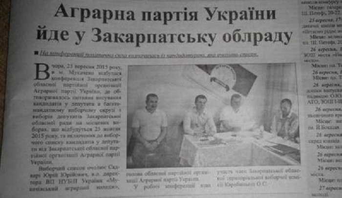 Газета облради та ОДА «Новини Закарпаття» (№106-107 від 26 вересня) розмістила інформацію про партійні конференції щодо висунення кандидатів лише двох політичних сил із посиланням на їх прес-служби. Мова йде про партії «Блок Петра Порошенка «Солідарність» та «Єдиний Центр». Інформації про партійні конференції (збори) інших політичних сил не зафіксовано.