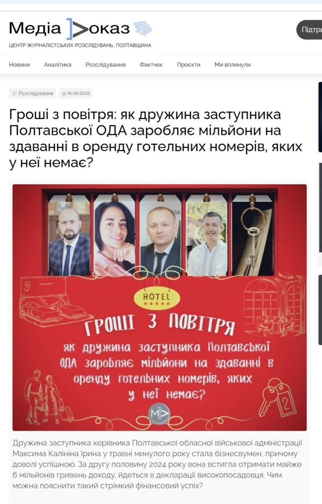 Одним з резонансних розслідувань МедіаДоказу стала публікація про бізнес заступника начальника Полтавської ОВА. Скриншот: “Медіадоказ”