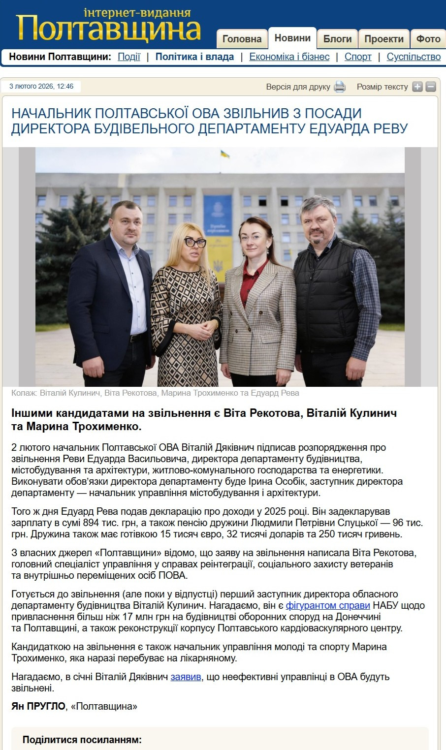 Начальник Полтавської ОВА Віталій Дяківнич – основний експерт, який коментував у медіа події в області. Скриншот: видання “Полтавщина”
