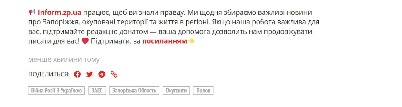 Кнопка підтримки в inform.zp.ua є під новинами медіа. Скрин: inform.zp.uaНаталія Виговська, регіональна представниця Інституту масової інформації в Запорізькій області