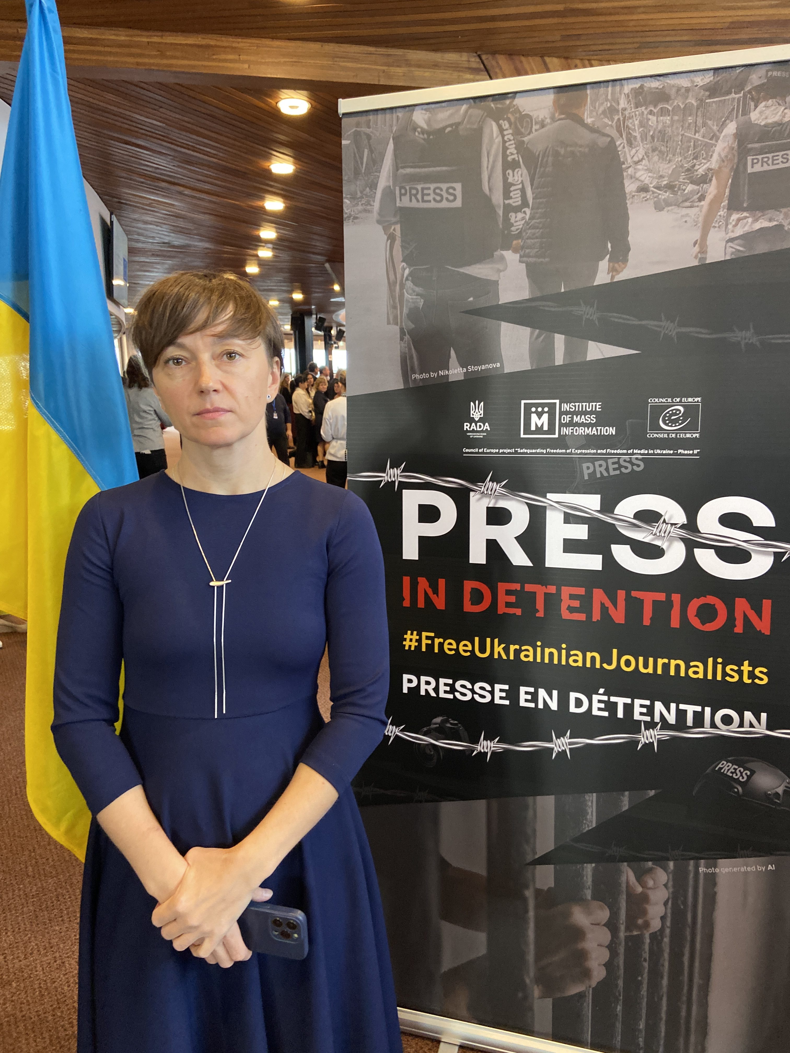 Відрядження до ПАРЄ представниць ІМІ та виготовлення виставки Press in Detention відбулися завдяки підтримці Ради Європи в межах проєкту “Захист свободи слова та свободи медіа в Україні – ІІ Фаза” (SFEM-UA).