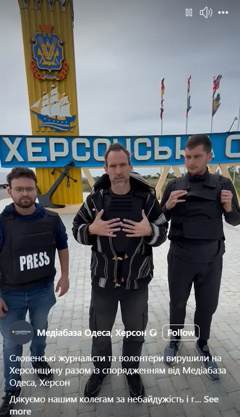 Slovenian journalists and volunteers. Screenshot from the Mediabaza Odesa/Kherson page by IMI