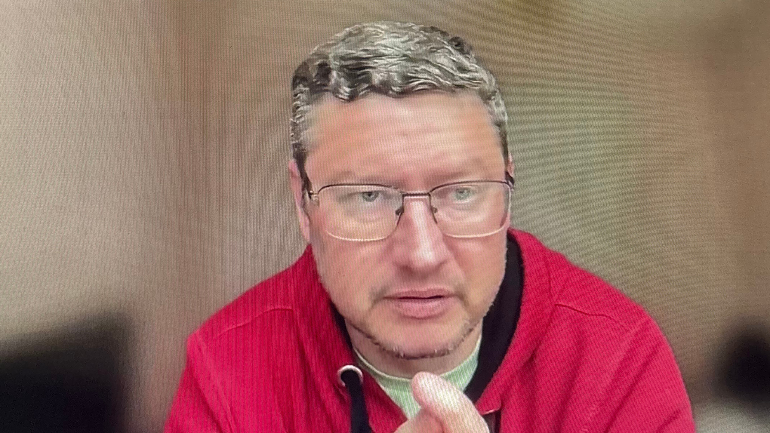 Oleksandr Burmahin during an online meeting at Mediabaza Cherkasy. Photo by Anastasia Neboha