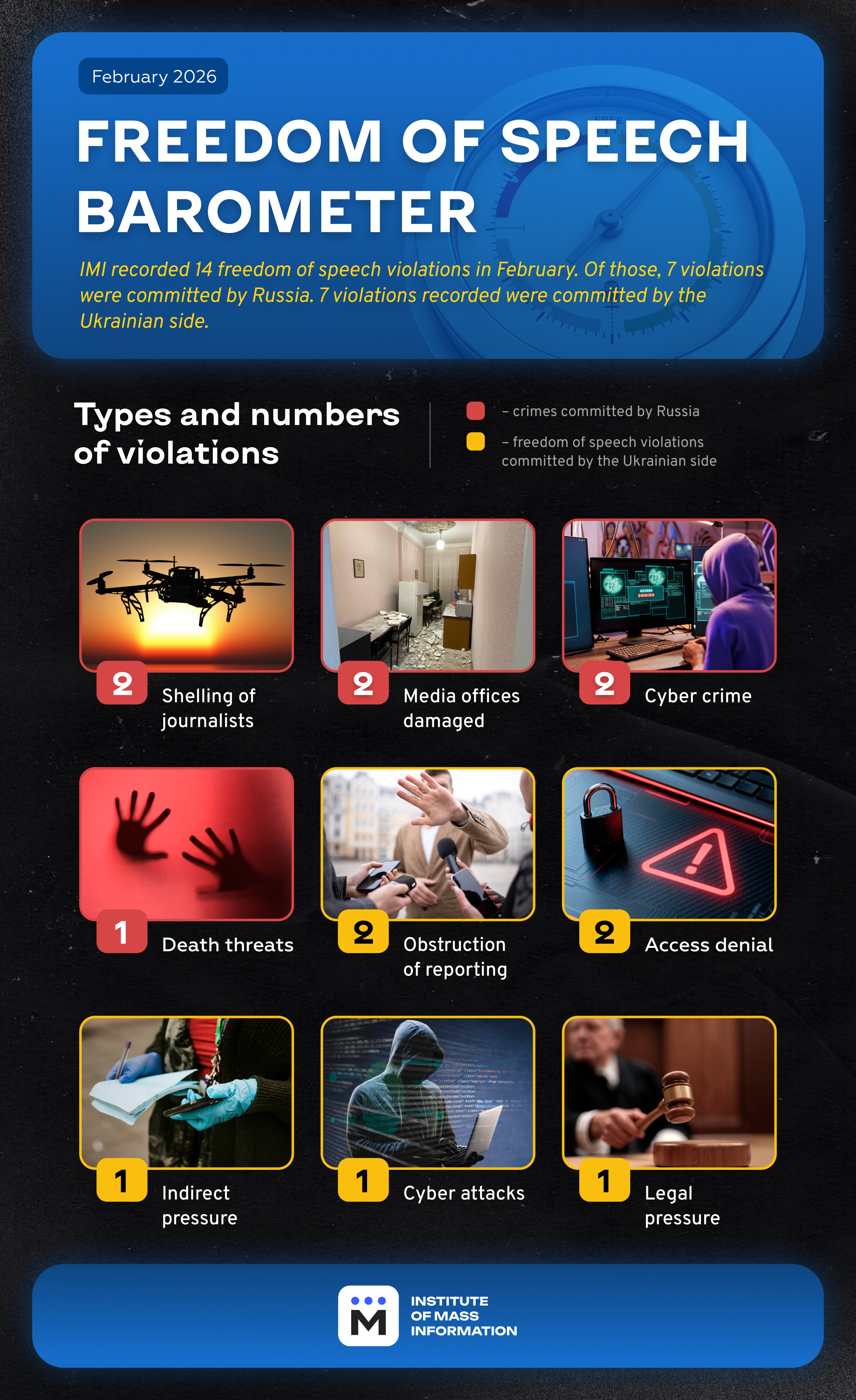 See the full list of press freedom violations in Ukraine in February 2026 below.