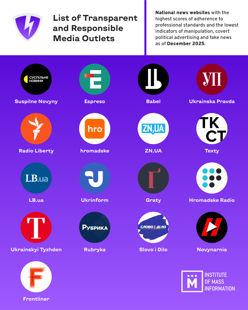 These are the results of the two-stage in-depth monitoring of online media by the Institute of Mass Information (IMI). The assessment covers transparency, integrity, adherence to journalistic standards, and clear labeling of advertising.