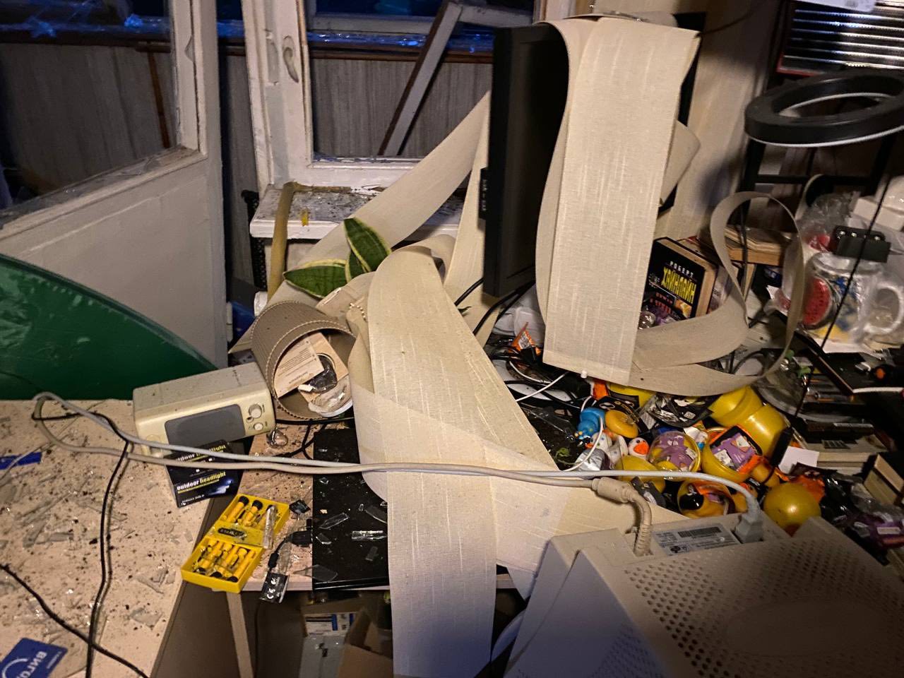 The blast damaged the windows in the Kyiv apartment rented by the Kavun.City chief editor Yevhenia Virlych / Photo by Yevhenia Virlych on Facebook