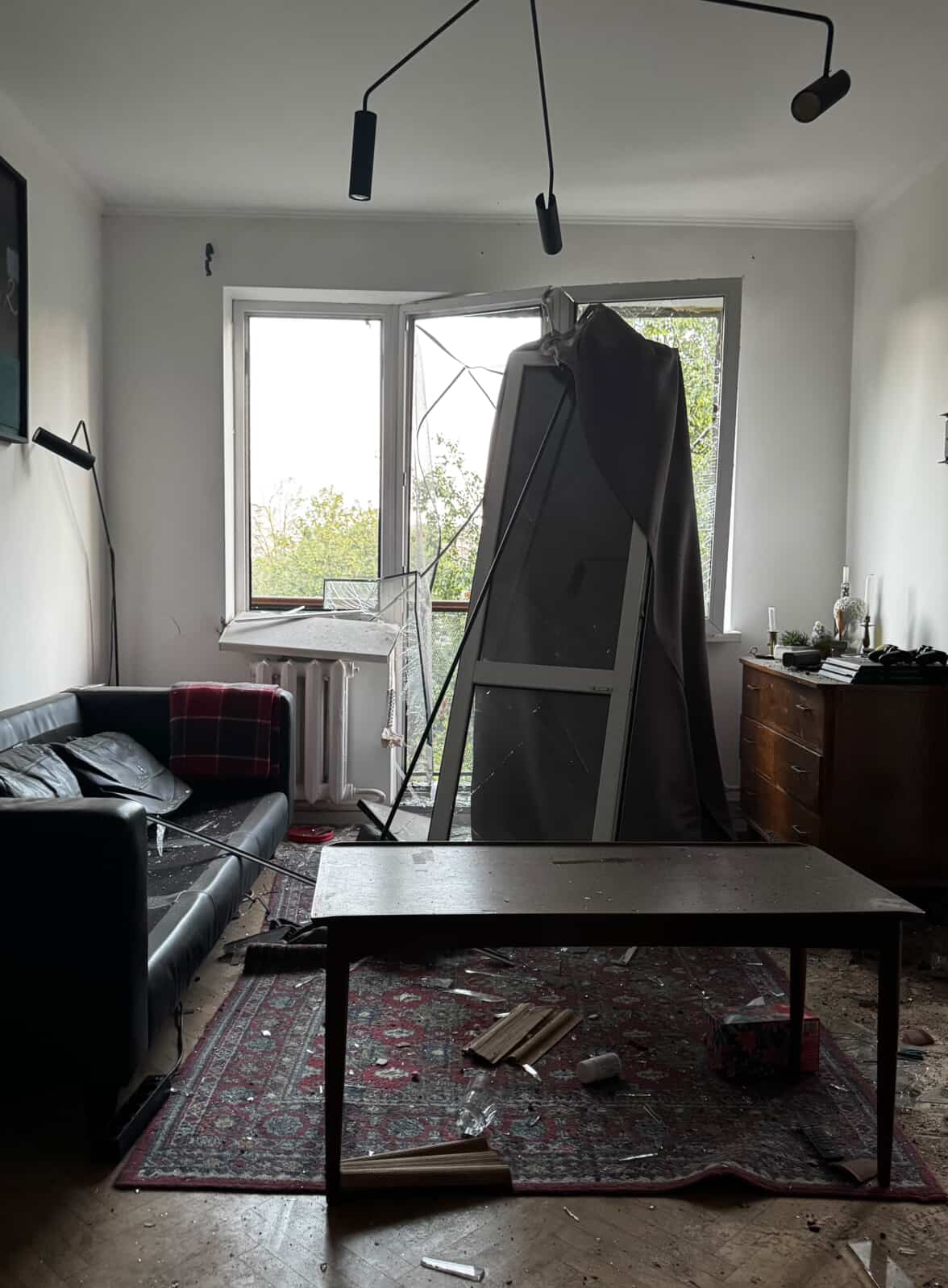 Serhiy’s apartment was damaged in the Russian strike on Kyiv. Photo shared with IMI by Serhiy Yeremenko