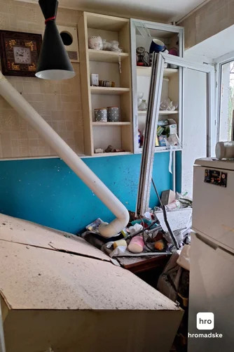 Наслідки пошкодження квартири журналістки hromadske Наталії Мазіної внаслідок російської атаки 31 липня 2025 року/Фото – hromadske