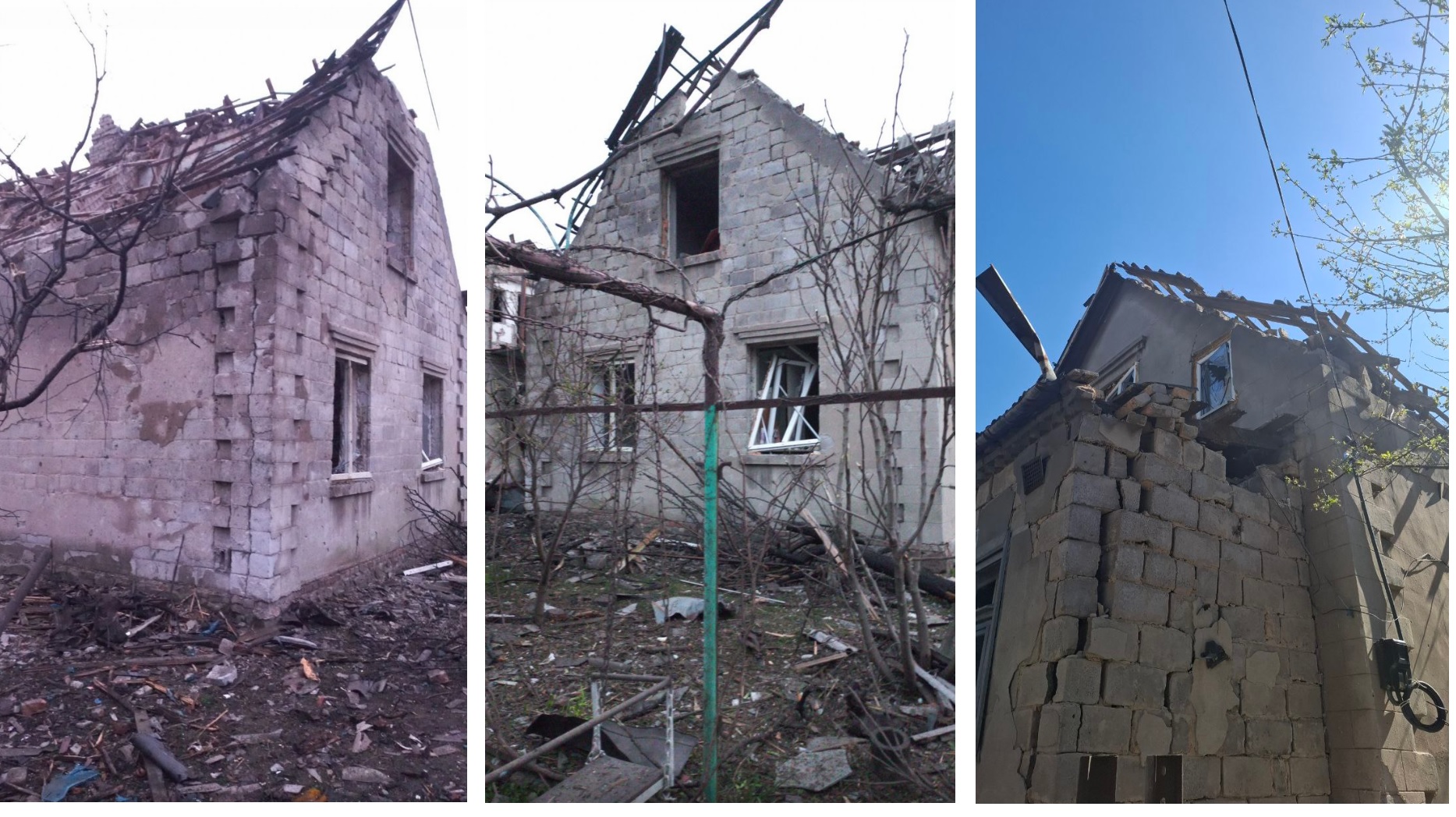 The morning after the drone strike. The family’s ruined house. Photo by Oleh Dmytriev, collage by Kateryna Lysiuk