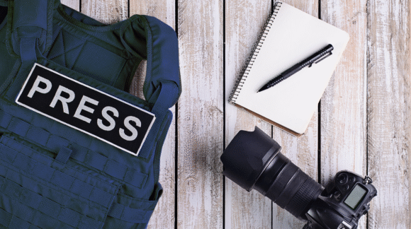 At IMI, journalists can get bulletproof vests, first aid kits, and other equipment for the time of war