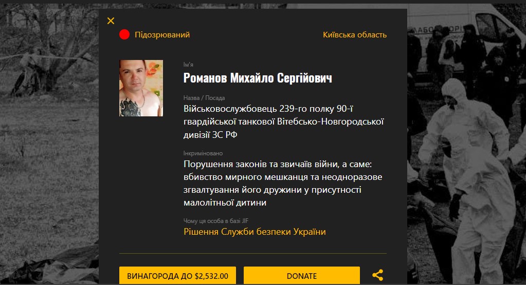 Перейти до Fund for rewarding people for information about Russian war criminals created in Ukraine