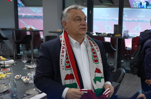 Перейти до Orban attends a soccer game in a scarf depicting a map of Hungary that includes a part of Ukraine