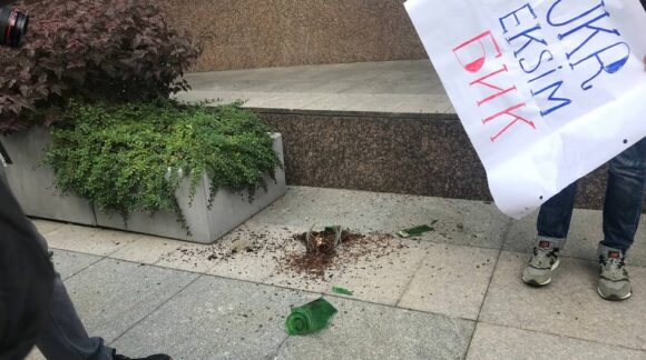 Перейти до Flowerpot fell on protesters from window of Ukreximbank